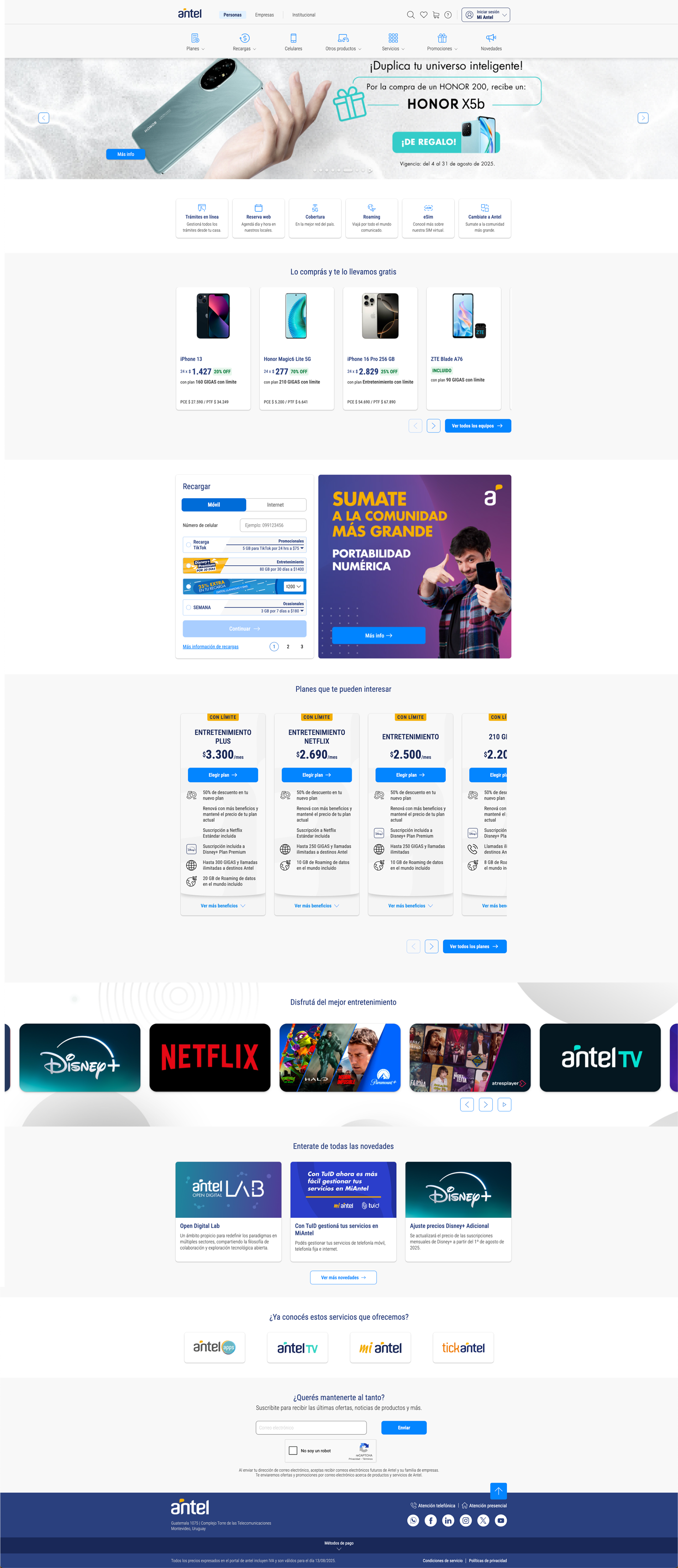 UX/UI design project for the modernization of Antel’s web portal, incorporating an optimized information architecture and a scalable design system.